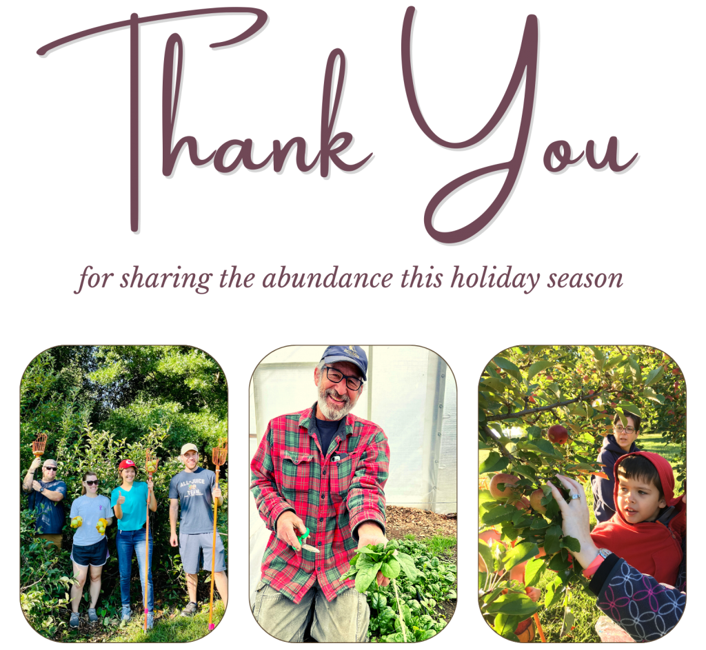 We also want to thank you for supporting our first-ever impact gift catalog and our new merchandise store. Your purchases not only directly benefit our organization, but also help spread awareness about the important work we do. Additionally, we appreciate your participation in our Giving Tuesday e-cards campaign, which helped us to engage with new donors and spread the word about After the Harvest.